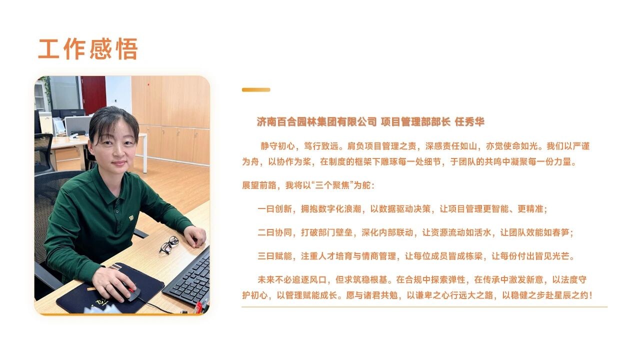 匠心足跡 強(qiáng)調(diào)園林人的專業(yè)精神和一步一個腳印的奮斗歷程。“百合視界“指通過員工的視角(感悟和隨手拍)展現(xiàn)的公司風(fēng)貌。突出專業(yè)性和員工視角。