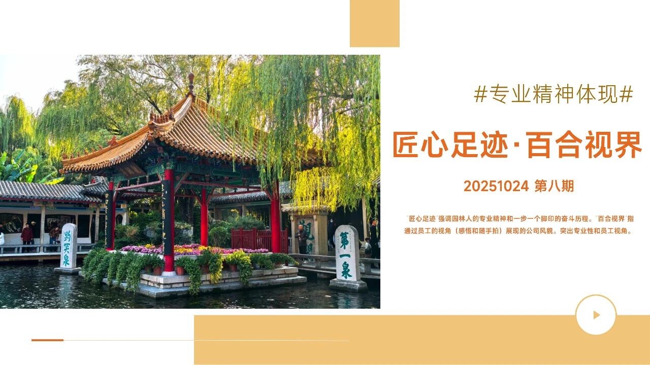 匠心足跡 強(qiáng)調(diào)園林人的專業(yè)精神和一步一個腳印的奮斗歷程。“百合視界“指通過員工的視角(感悟和隨手拍)展現(xiàn)的公司風(fēng)貌。突出專業(yè)性和員工視角。