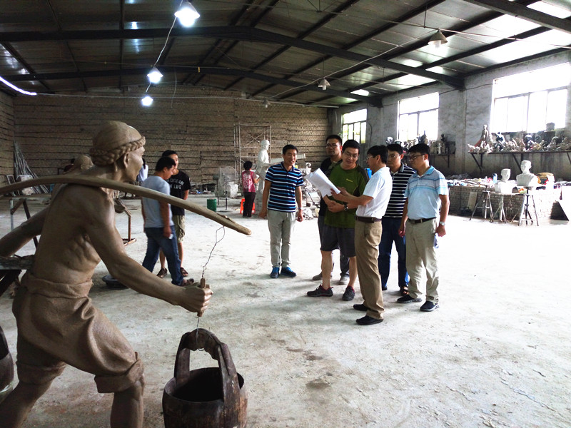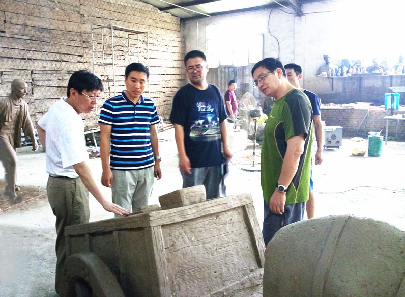 局領導調研五蓮軒泉水民俗體驗館雕塑項目