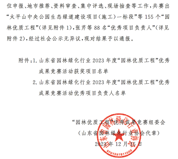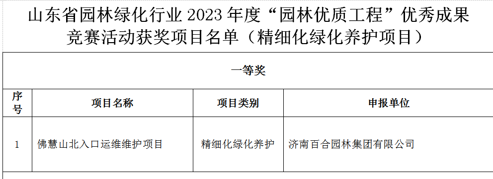 百合園林集團(tuán)參賽“園林優(yōu)質(zhì)工程”優(yōu)秀成果競賽活動百合園林集團(tuán)喜獲精細(xì)化綠化養(yǎng)護(hù)項(xiàng)目一等獎