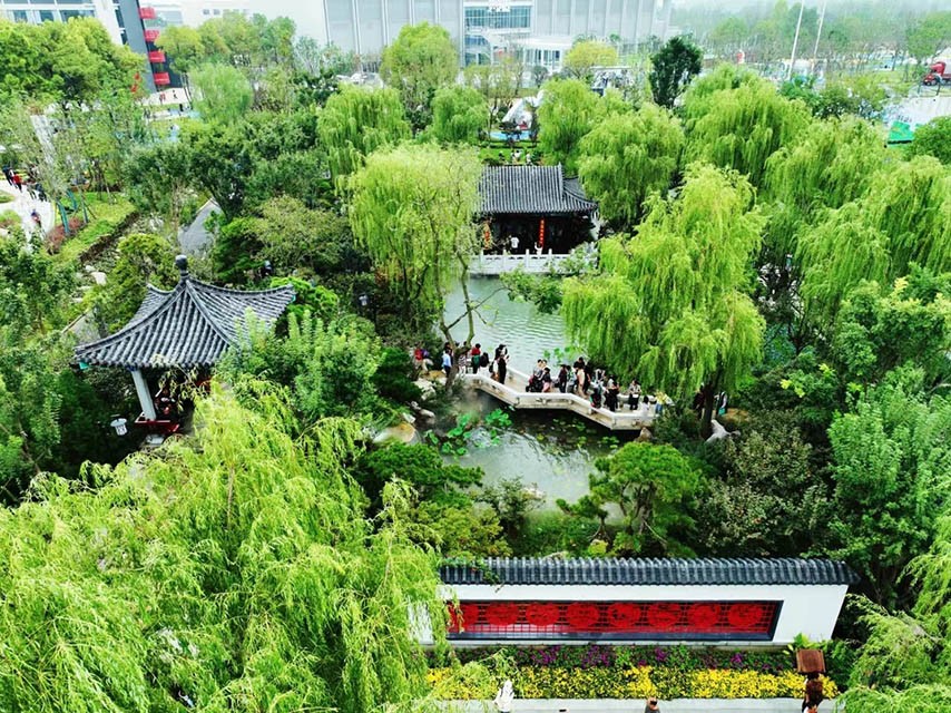 濟(jì)南園位于合肥國際園博園室外展園A3地塊,占地約2600平方米,以“山水泉城,魅力濟(jì)南”為主題,總體布局以濟(jì)南傳統(tǒng)院落為基底,融合山水城市格局,結(jié)合人文歷史、風(fēng)土人情,從畫境、生境、意境三個層次,展現(xiàn)濟(jì)南“山、泉、湖、河、城”渾然一體的獨特魅力。2022年10月開工建設(shè),2023年5月竣工,在38個參展城市展園中率先建成。