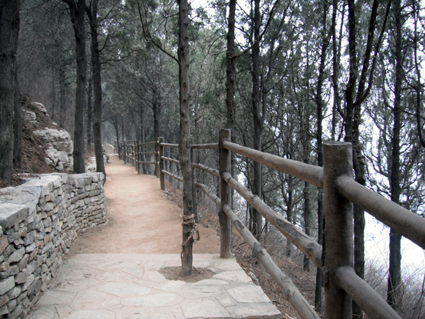工程在施工過程中,堅(jiān)持“以人為本,因地制宜”,根據(jù)施工現(xiàn)場情況,新建冰紋石臺階路及糠糧砂鋪地等,力爭為游客提供一個(gè)自然、健康的游覽、健身環(huán)境。同時(shí),注重安全措施的設(shè)置,安裝塑木欄桿等設(shè)施。根據(jù)山體的自然條件,項(xiàng)目采取砌筑景觀擋墻及水平階的方式,對裸露山體進(jìn)行綠化改造,增大土壤的滲透率。在進(jìn)行綠化樹種選擇時(shí),堅(jiān)持適地適樹,選用適應(yīng)性強(qiáng)、抗貧瘠及干旱能力強(qiáng)的鄉(xiāng)土樹種,并適當(dāng)增加常綠樹種,在突出植物多樣性的同時(shí),提高山體的四季景觀效果。