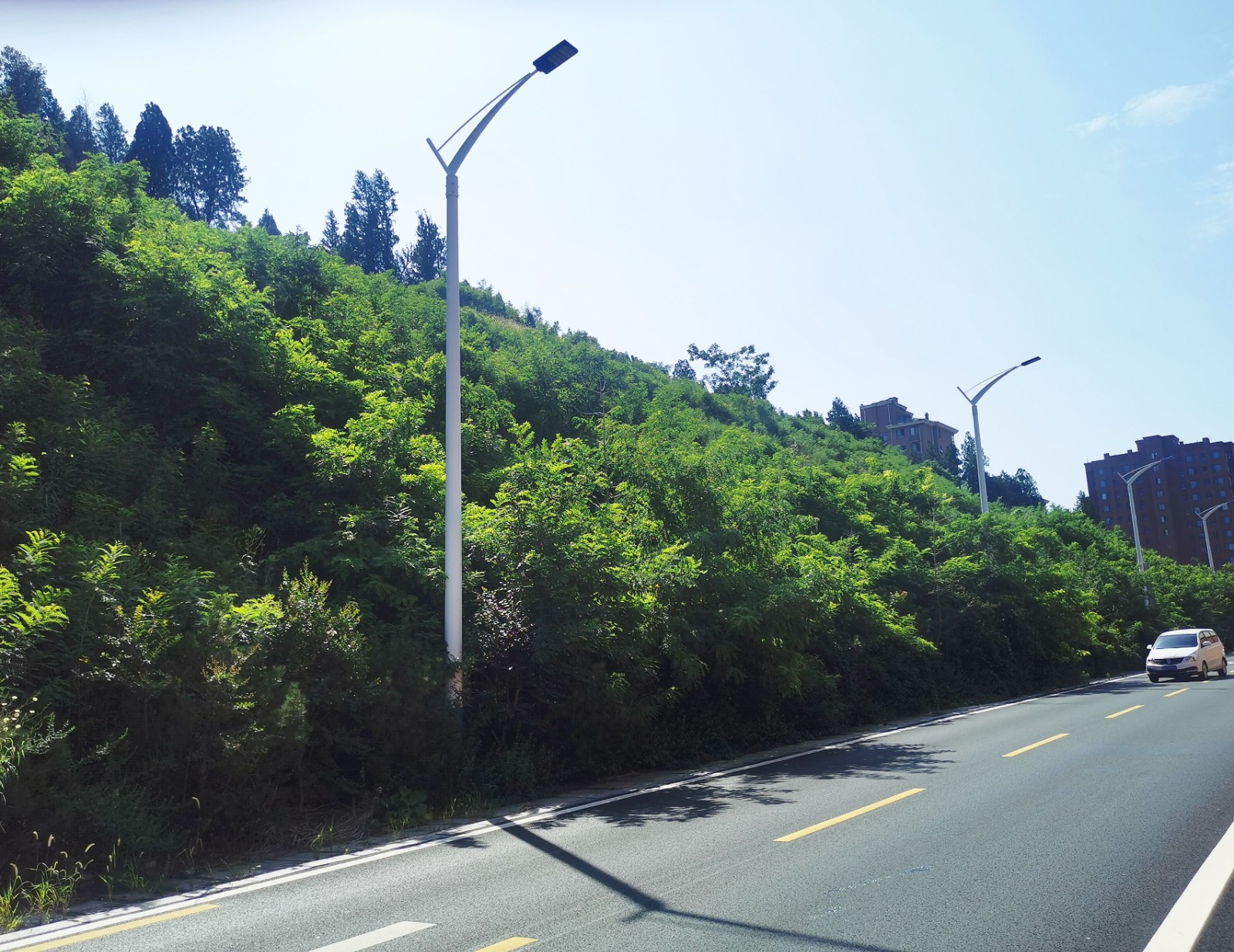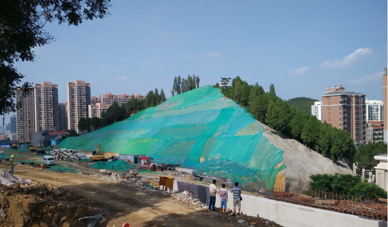 翠屏山工程邊坡位于濟(jì)南市二環(huán)東路沿線,千佛山風(fēng)景名勝區(qū)西臨,對重要道路地段的景觀有較大影響,同時(shí)也承擔(dān)了破損山體生態(tài)功能的需求。坡面為建設(shè)老虎山隧道,因隧道施工而形成的人工坡面,長137米,高29米,坡度39.6°,綠化面積3552平方米。原地形為三級平臺(tái),每級平臺(tái)寬約2米,由于雨水侵蝕,有部分土石滑落的現(xiàn)象。項(xiàng)目在坡面排險(xiǎn)的基礎(chǔ)上,采用生態(tài)袋、土工格室、植被毯等多修復(fù)方式結(jié)合的方法,選擇適宜的植物,對坡面進(jìn)行植被重建,最終修復(fù)成一個(gè)集穩(wěn)固邊坡、生態(tài)修復(fù)、保持水土、景觀綠化等多功能為一體的綜合性邊坡,呈現(xiàn)出具有自然性和生態(tài)性的綠化景觀。
