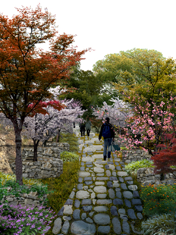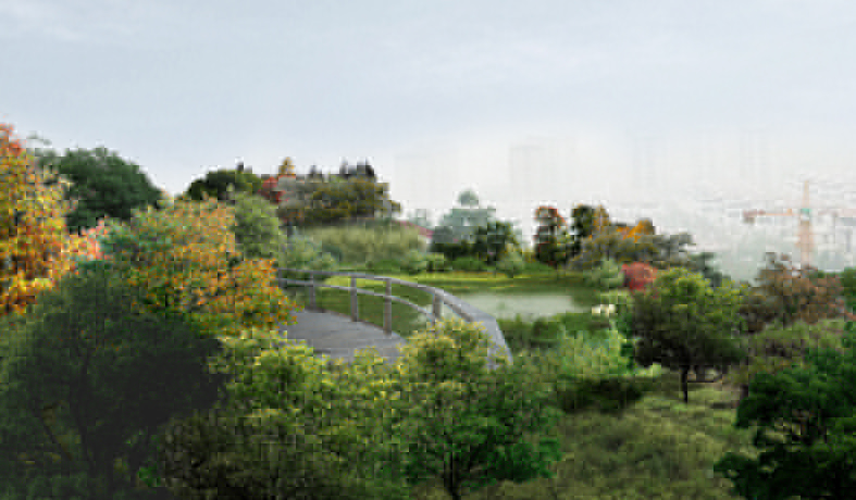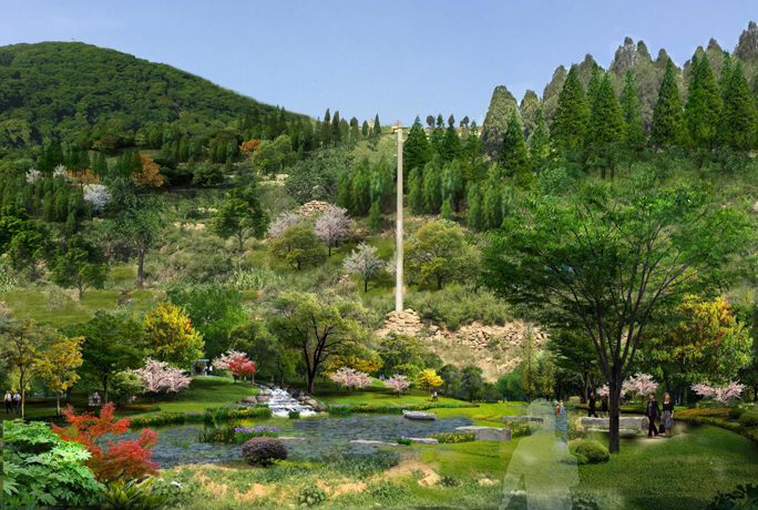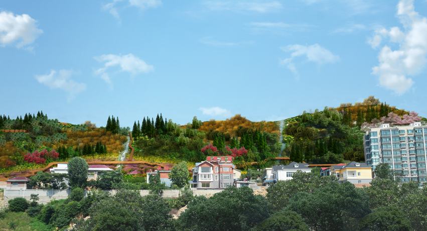 倡導健康生活原則:設計中將健康生活的理念滲透在區(qū)域性公園的設計之中,期待攜妻子護子于山中漫步,體會森林氧吧并登高遠眺的快樂生活、健康生活的情景。