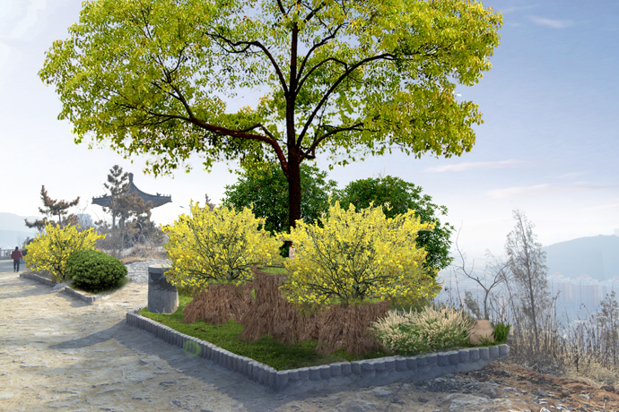 部分山頂區(qū)域規(guī)劃設(shè)計——根據(jù)公園現(xiàn)狀,對部分山頂區(qū)域進(jìn)行科學(xué)合理規(guī)劃,增建便民及管理配套設(shè)施。整體風(fēng)格樸素自然,與自然融為一體,打造特色景觀片區(qū),并增加休閑設(shè)施和基礎(chǔ)服務(wù)設(shè)施,使郎茂山公園成為濟(jì)南南部有郊野特色的城市公園。