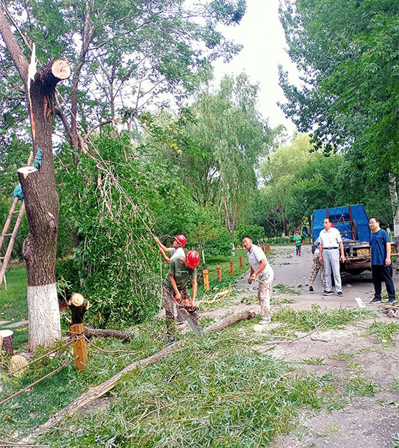 扶正倒伏苗木 清理樹木斷枝:近日,受惡劣天氣的影響,個別項目出現(xiàn)苗木倒伏及斷枝的情況,百合園林集團綠化養(yǎng)護管理人員對相關(guān)項目倒伏苗木及時進行扶正并清理斷枝,營造了一個良好的自然環(huán)境,同時也消除了安全隱患。