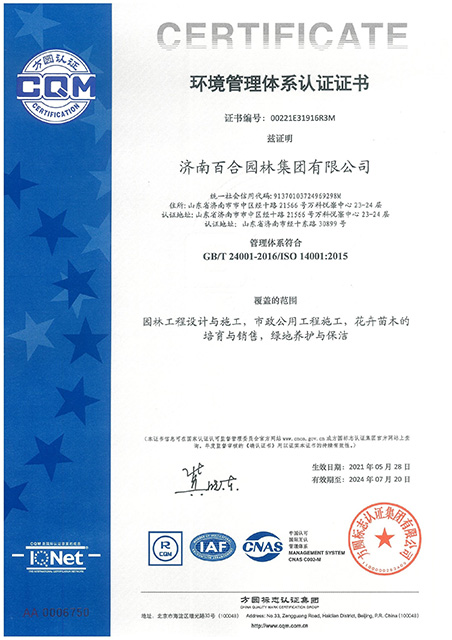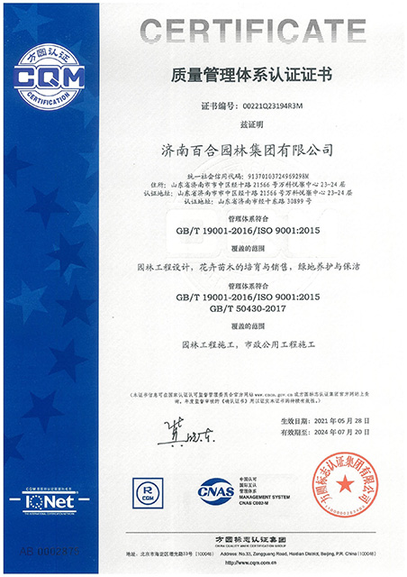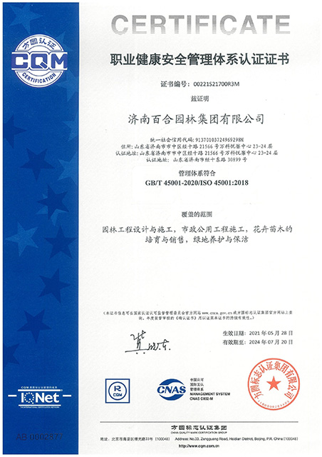 經(jīng)過嚴格審核,審核組一致認為:百合園林集團的質(zhì)量·環(huán)境·職業(yè)健康安全管理體系為工程質(zhì)量、生產(chǎn)安全提供了有力保障,促進了公司健康、有序地發(fā)展,該體系達到了復評換證現(xiàn)場審核標準,準予換發(fā)新證。